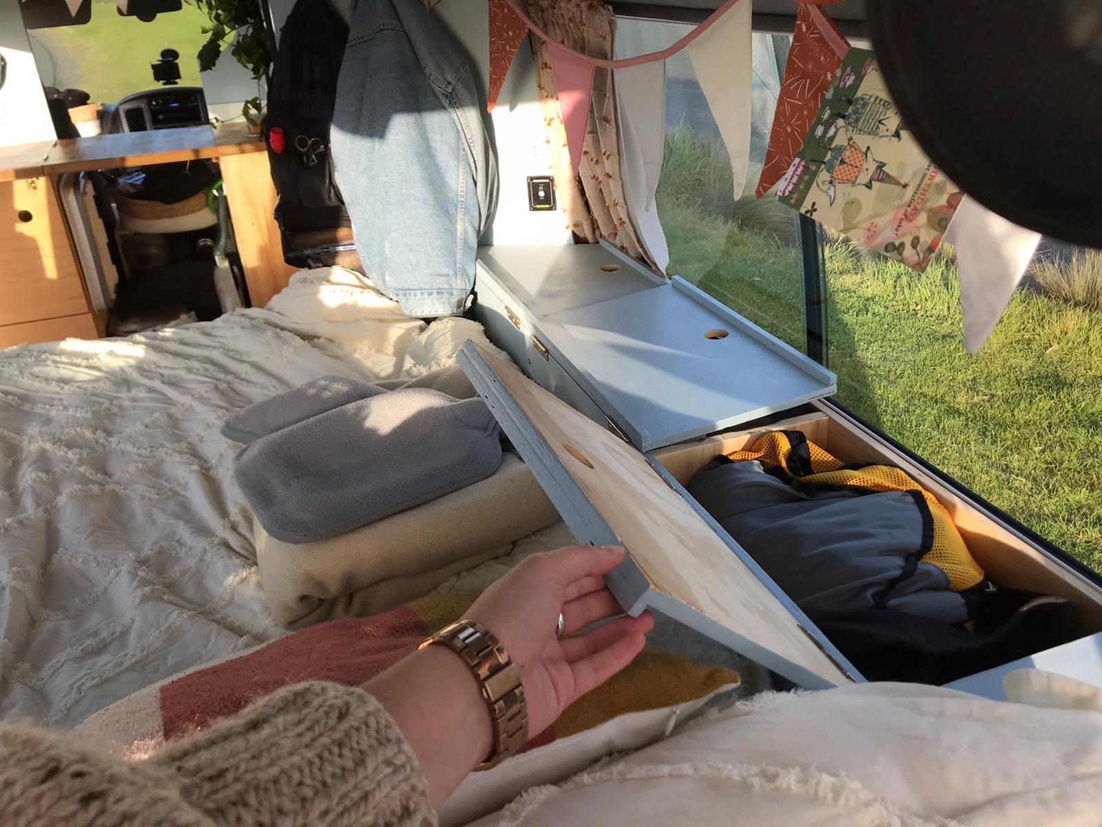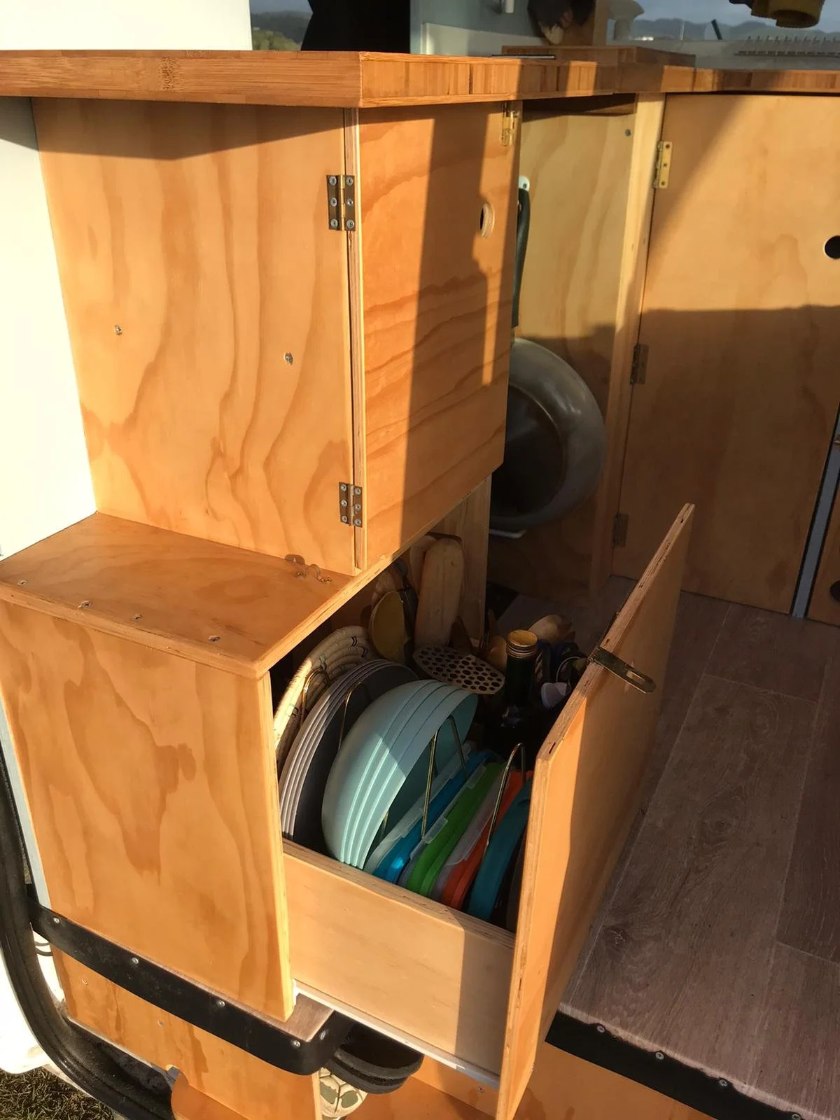 My wife and I built this van out completely from an empty shell. It was so much fun to figure it out what the best solution is, where to store everything but also make it homely and cosy.